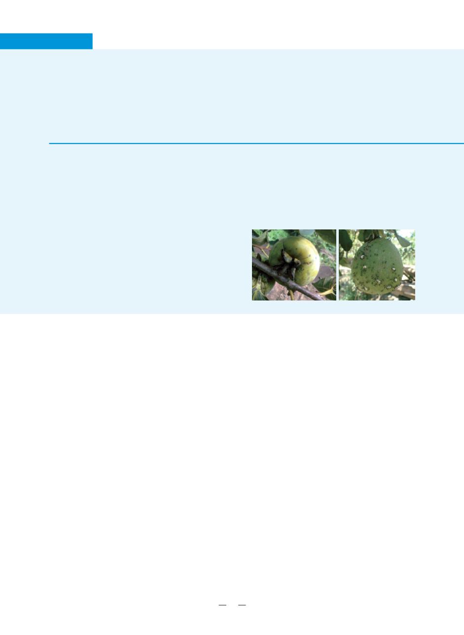 疣胸琉璃蟻造成果樹危害狀況 左j柿子 右j白柚