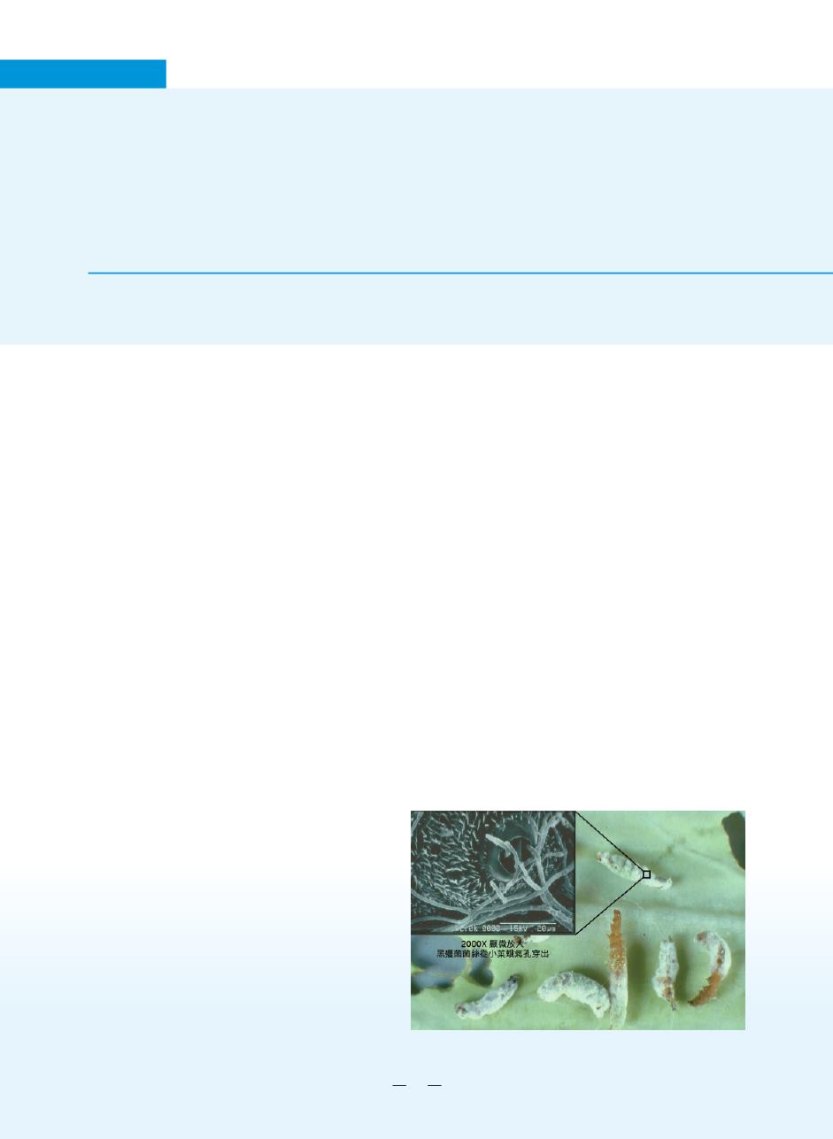 黑殭菌感染小菜蛾幼蟲及其電子顯微鏡鏡檢影像