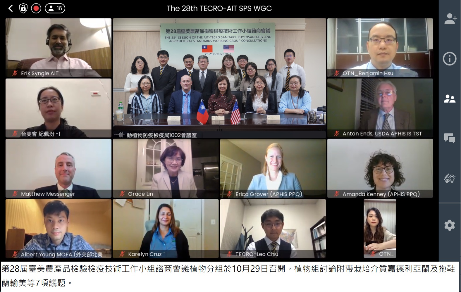 第28屆臺美農產品檢驗檢疫技術工作小組諮商會議植物分組視訊