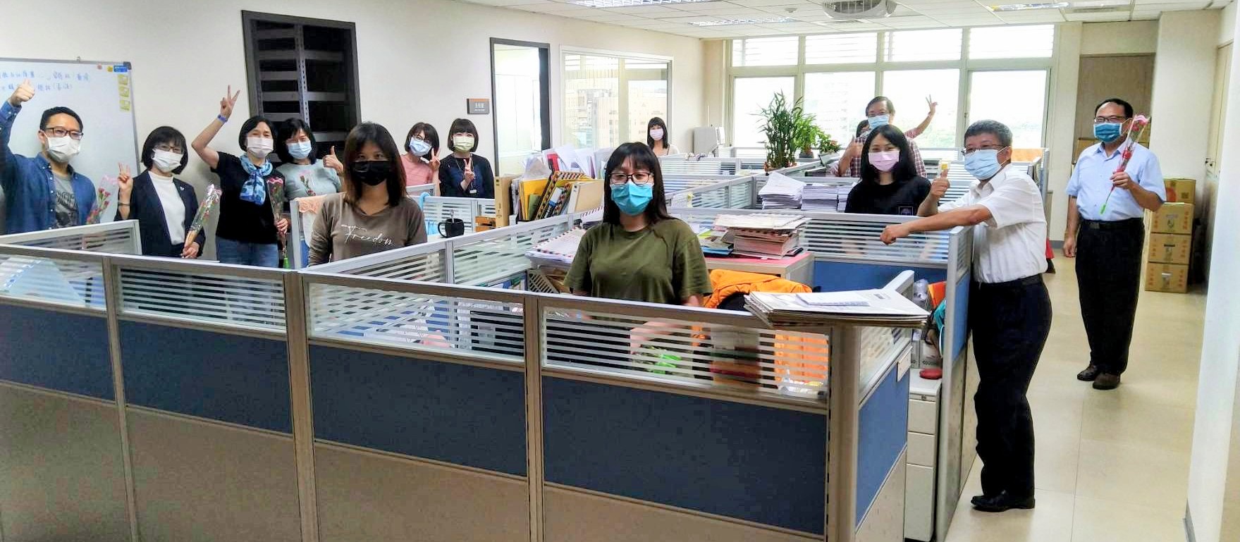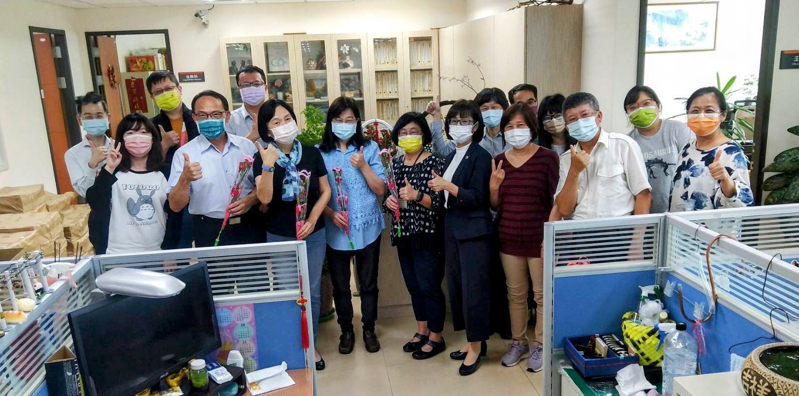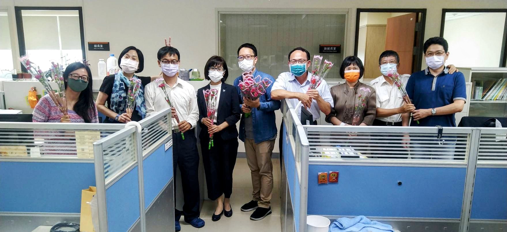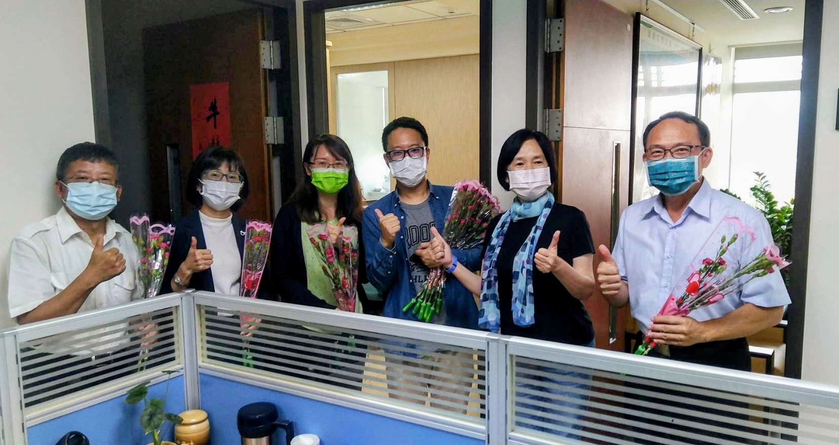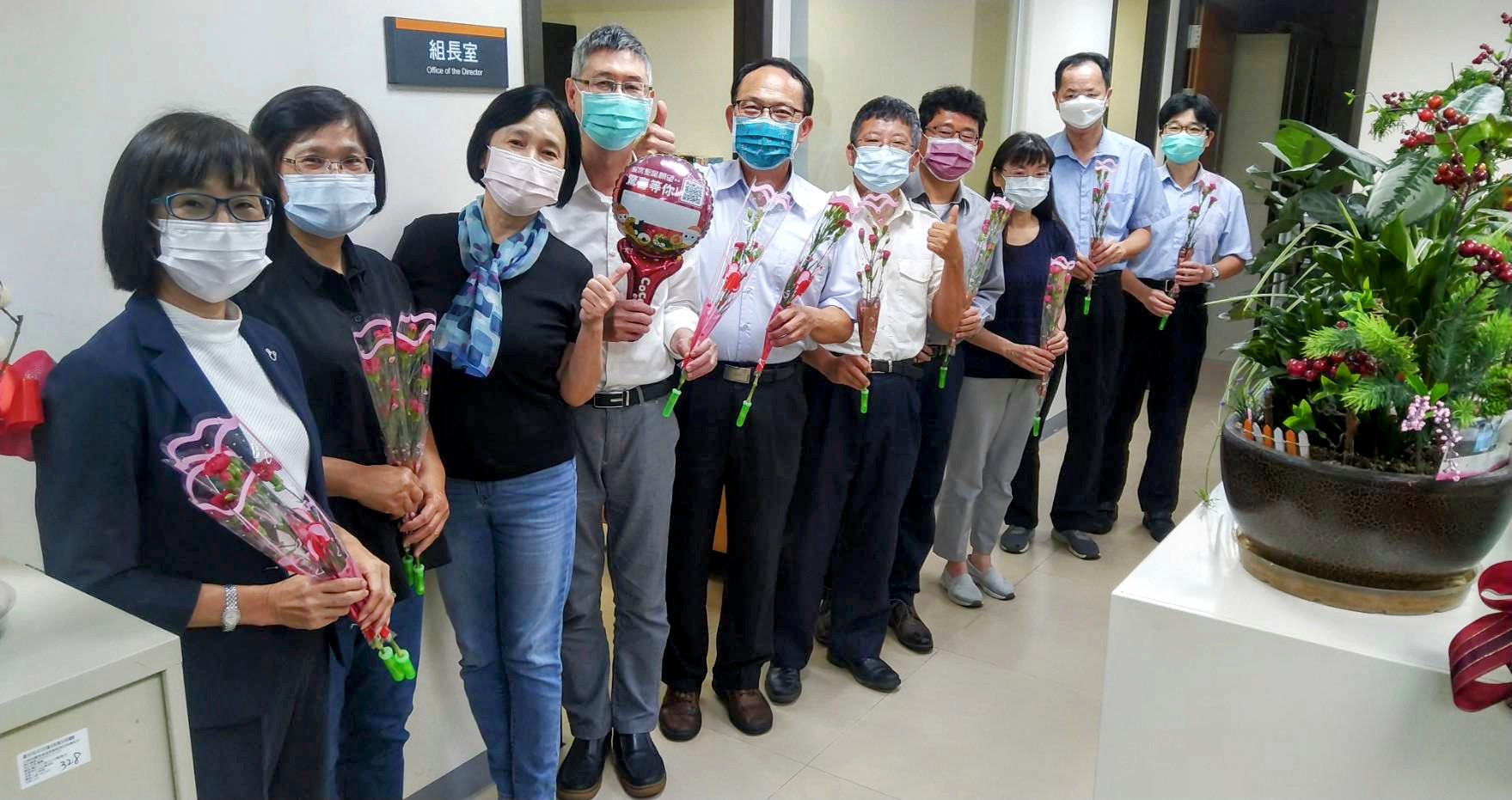 111年5月6日局長率副局長及主秘,由人事室陪同,至各組室致贈康乃馨,預祝大家