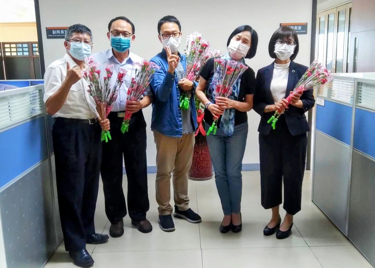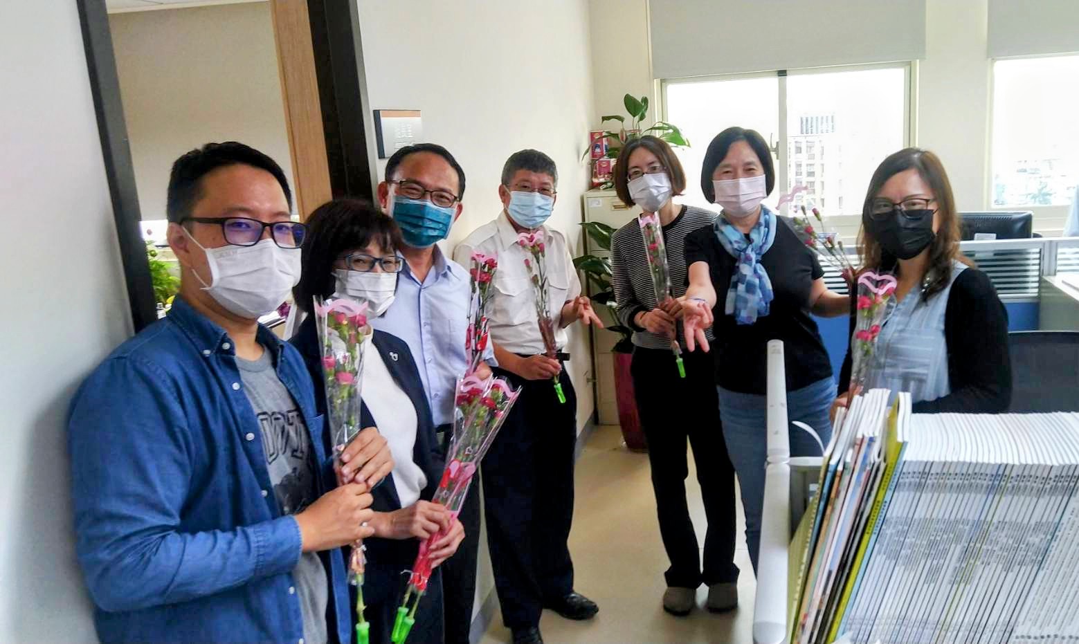 > 111年5月6日局長率副局長及主秘至各組室贈送康乃馨
