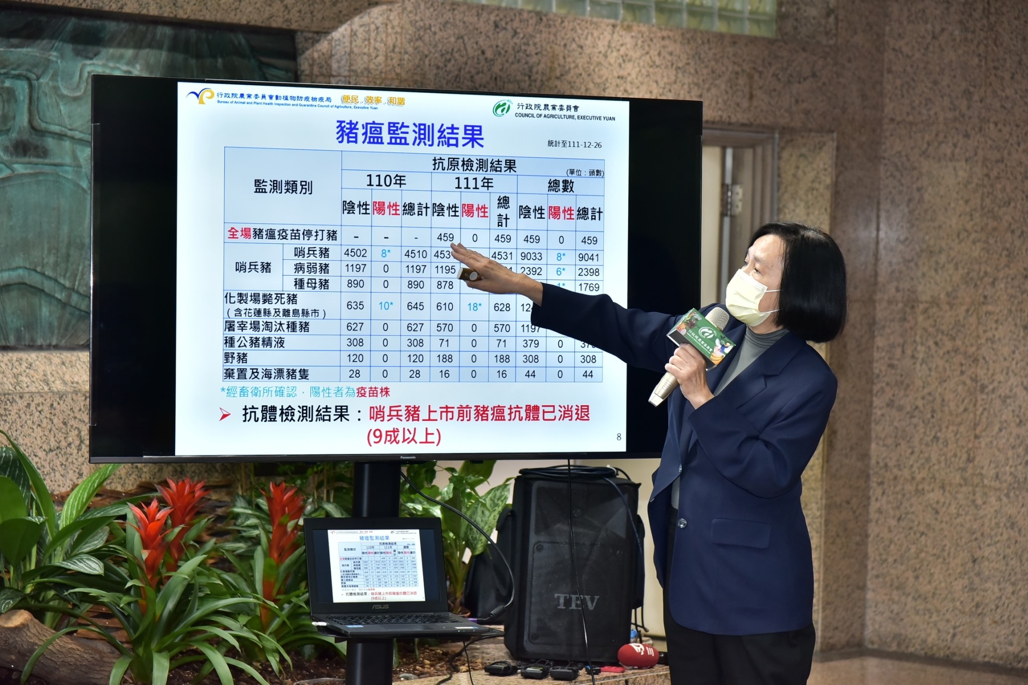 > 111年12月30日召開「撲滅豬瘟 自112年1月1日起全國肉豬停止施打豬瘟疫苗記者會」