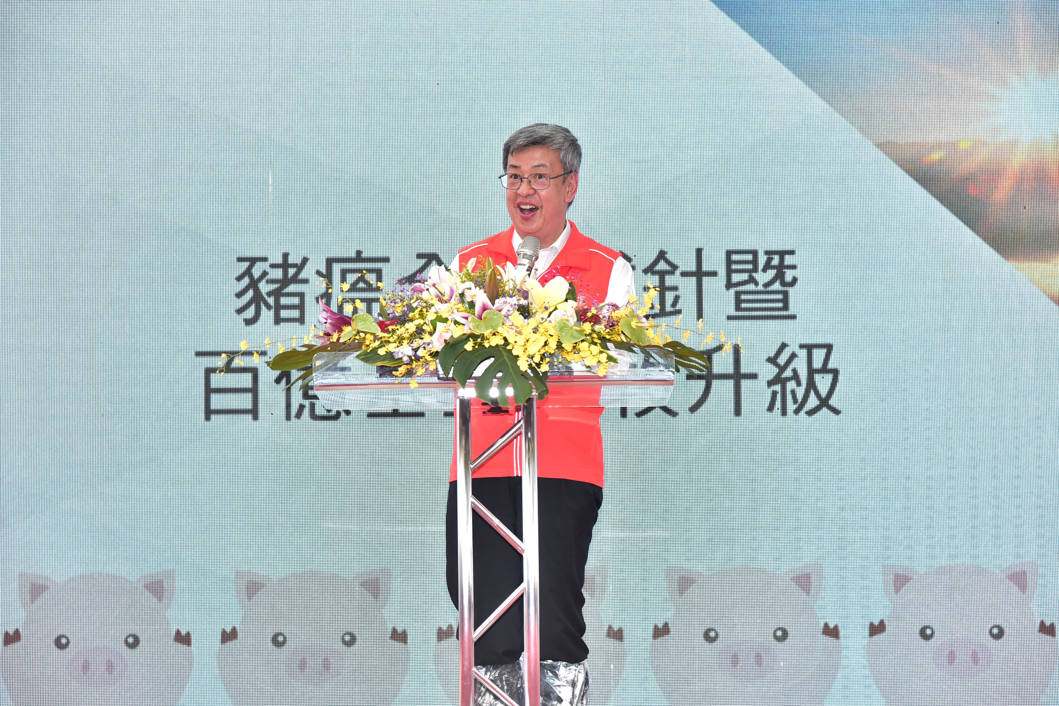 112年7月7日由行政院院長陳建仁、行政院農業委員會主委陳吉仲及嘉義縣縣長翁章梁一同前往嘉義縣民雄鄉新中天豬場參訪,了解豬瘟停打疫苗進度及產業轉型升級成果,農委會分別從生產、加工到消費整體產業鏈提升競爭力。