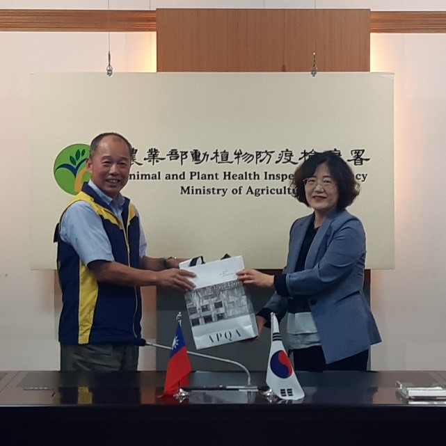 112年11月28日韓國動植物檢疫局(APQA)營運管理組副組長KIM Hyo-Jin偕該局行政幕僚拜會本署,由企劃組彭明興副組長主持接見,企劃組、動物檢疫組及植物檢疫組同仁陪同,雙方就進出口檢疫相關業務、架構、我國公務體系及風氣等充分交流,韓方對於我國廉政制度與本署檢疫人員清廉作為印象深刻。