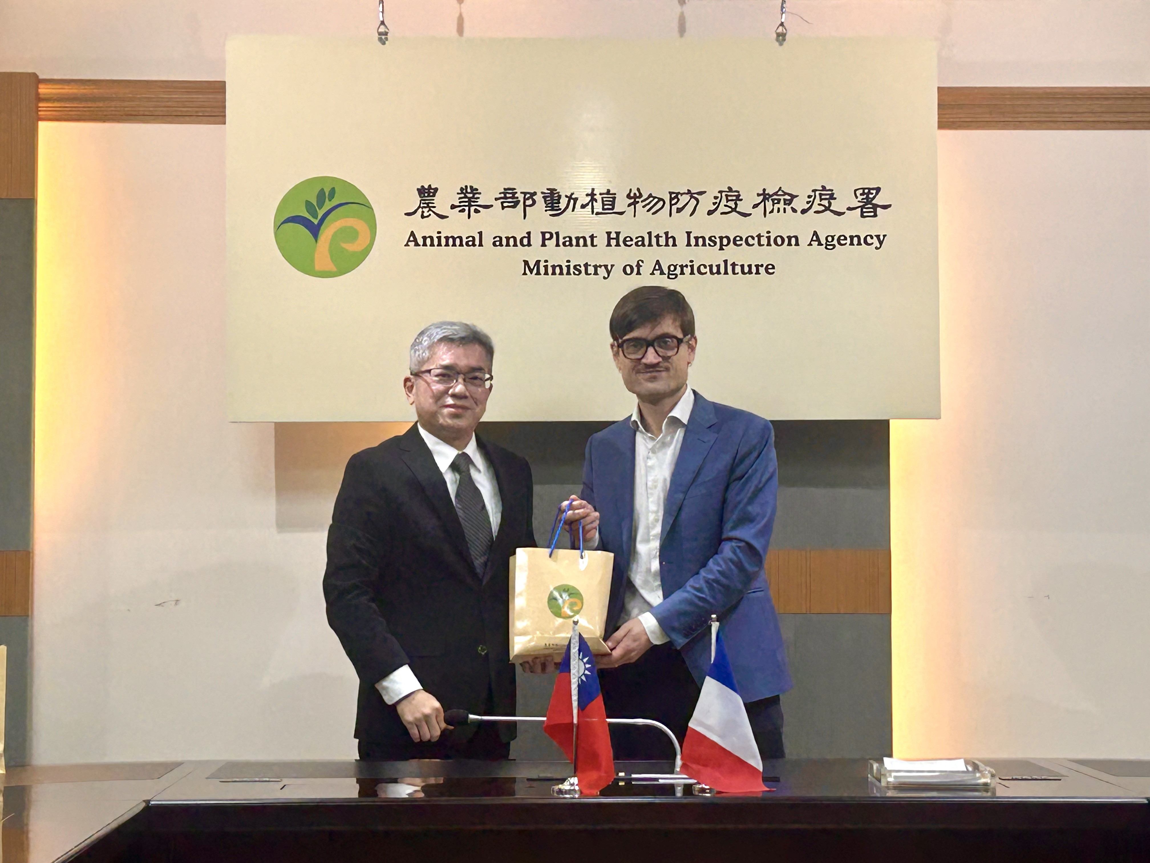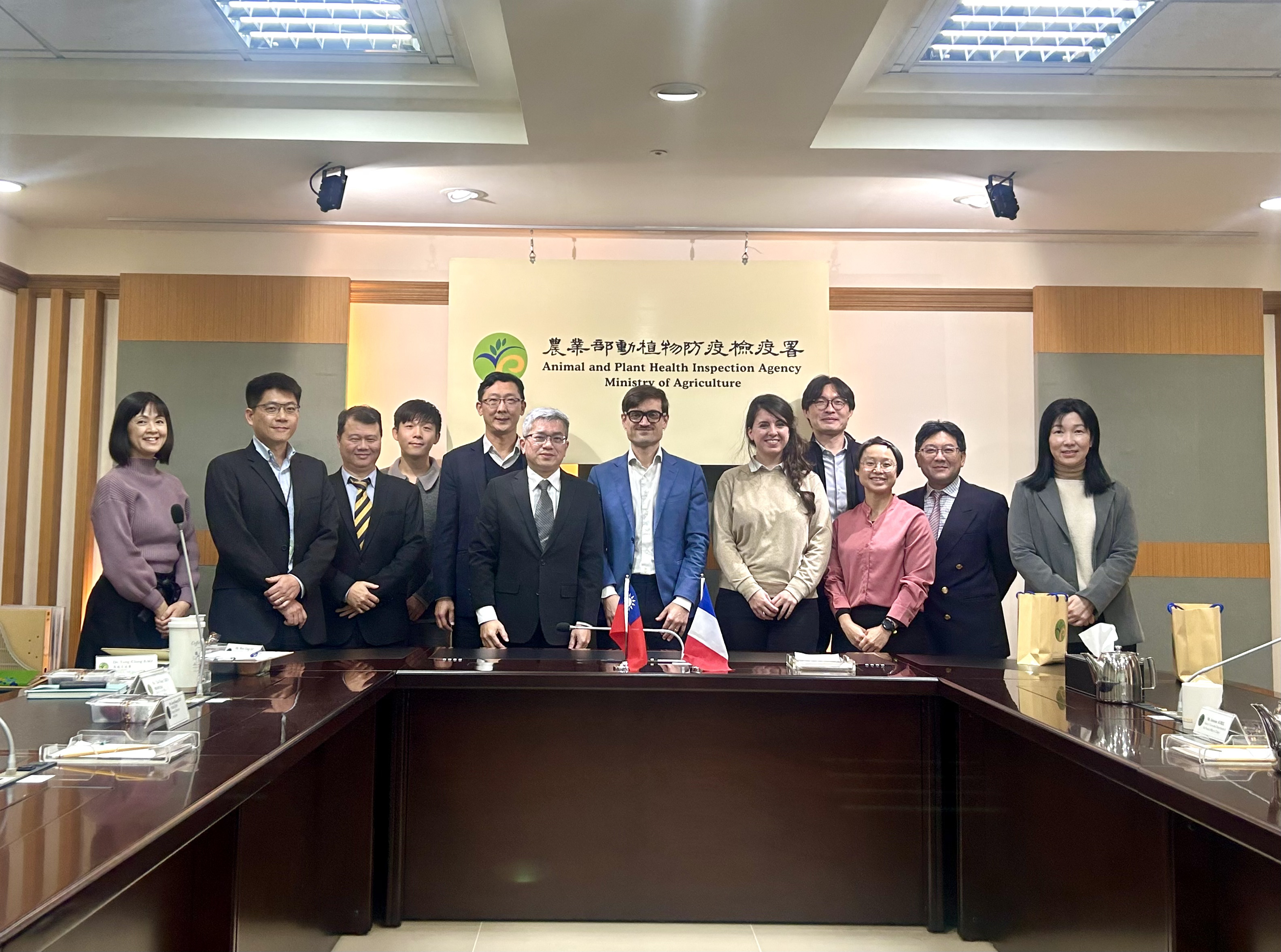法國農業部區域事務參事Ms. Caroline ROBERT與法國在台協會歐偉奇處長(Mr. Antoine AUBEL)及張泉謙專員於115年2月2日拜會本署,由廖鴻仁代理副組長代表接見,並由動物檢疫組、植物檢疫組、動物防疫組及企劃組同仁陪同,雙方討論融洽,氣氛和樂。