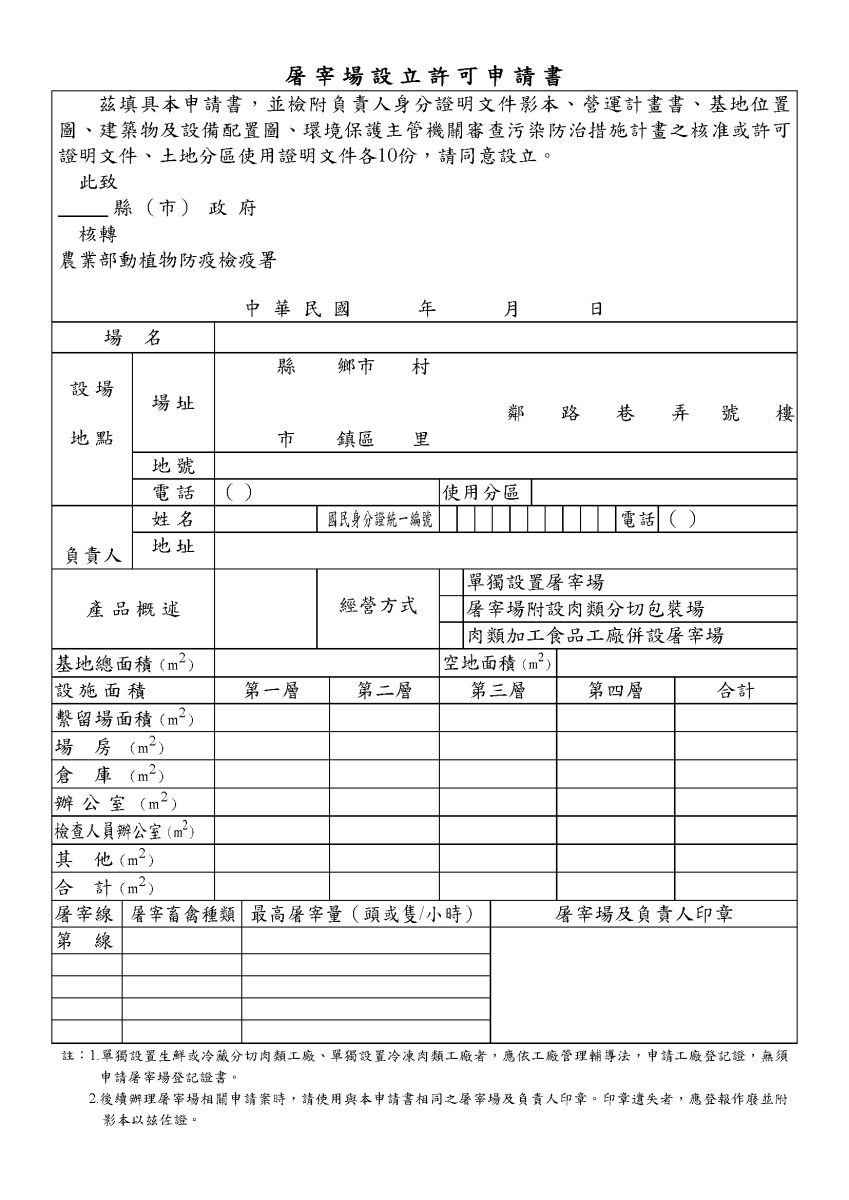 屠宰場設立許可申請書及營運計畫書格式(pdf)