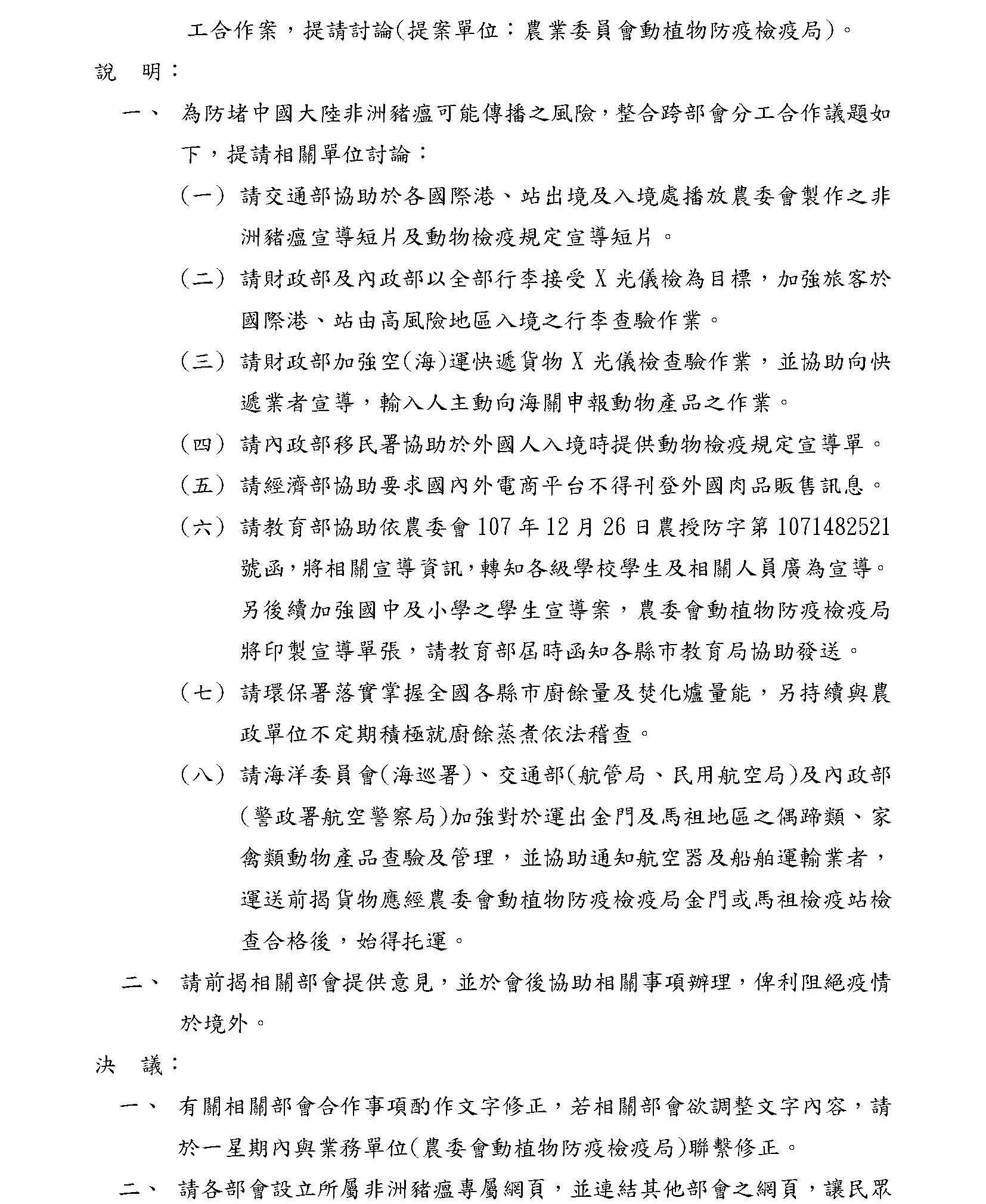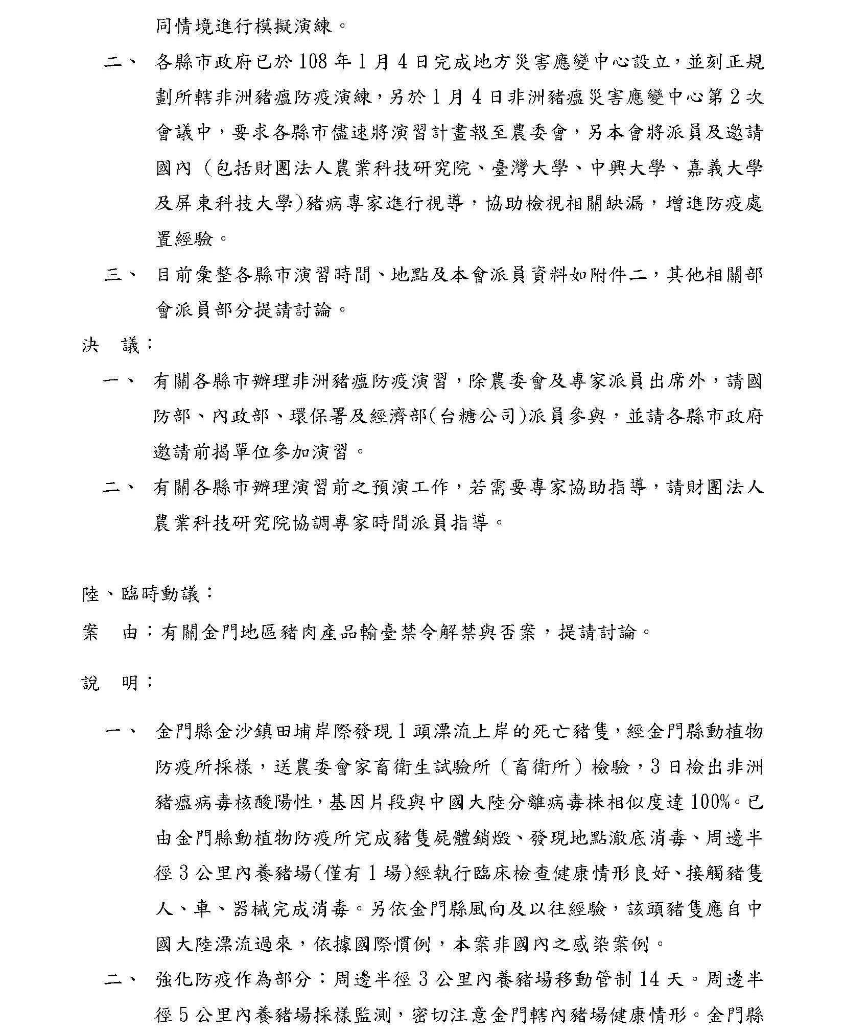 非洲豬瘟中央災害應變中心第19次會議紀錄