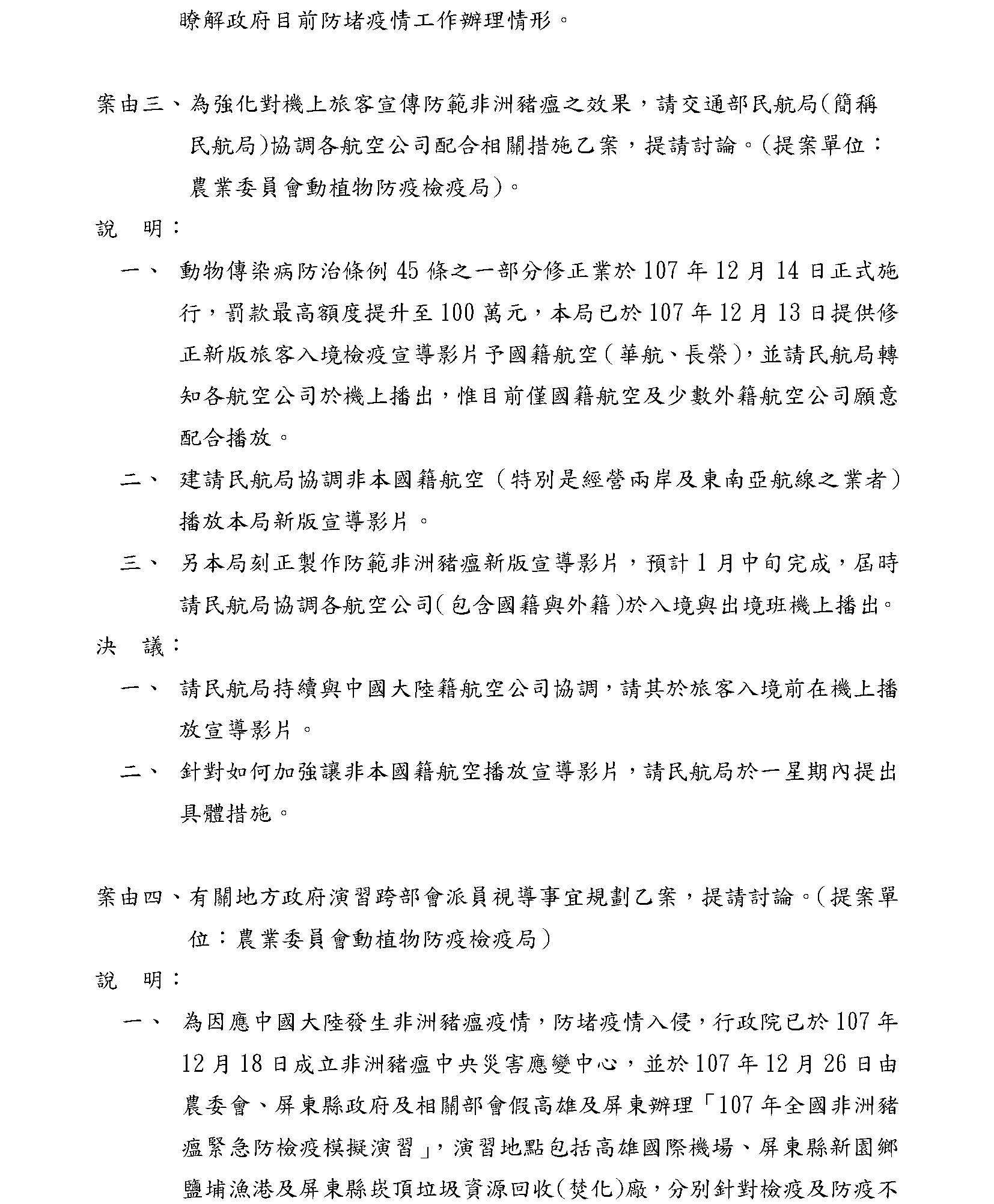 非洲豬瘟中央災害應變中心第3次會議紀錄