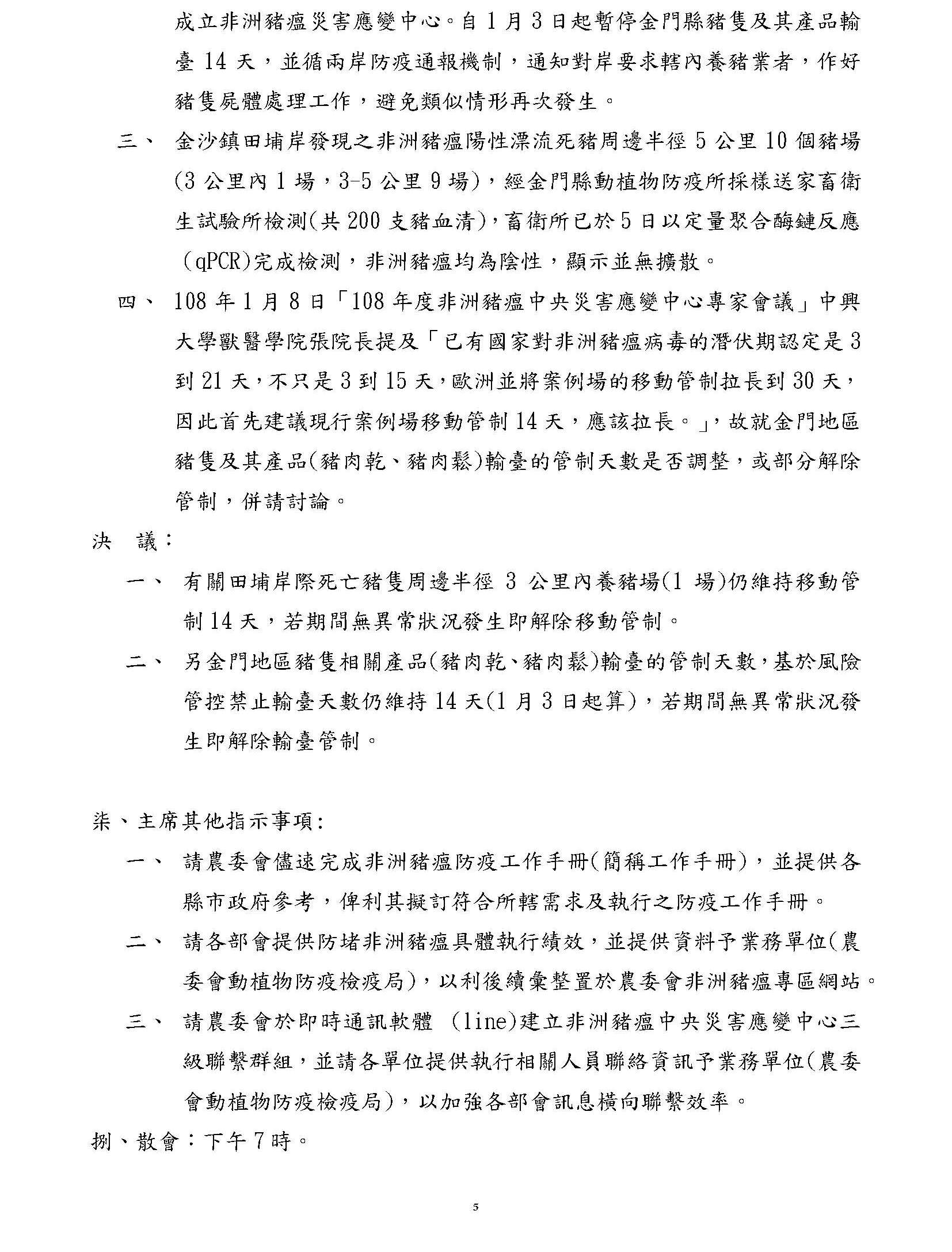 非洲豬瘟中央災害應變中心第5次會議紀錄