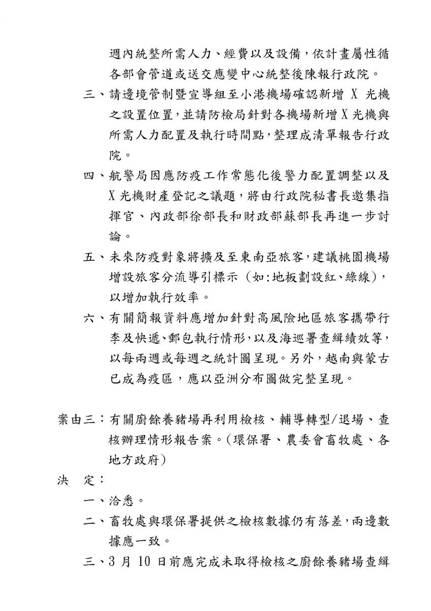非洲豬瘟中央災害應變中心第3次會議紀錄