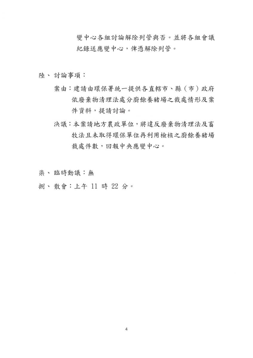 非洲豬瘟中央災害應變中心第4次會議紀錄
