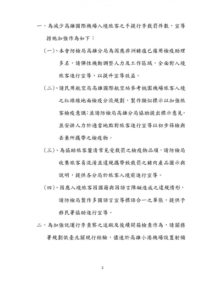 非洲豬瘟中央災害應變中心邊境管制暨宣導組114年第2次會議紀錄