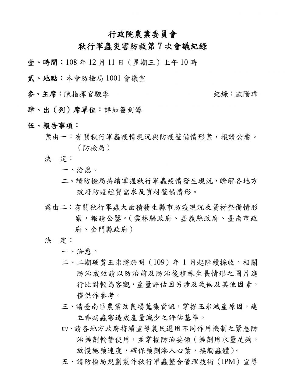 秋行軍蟲災害防救第7次會議紀錄(pdf)