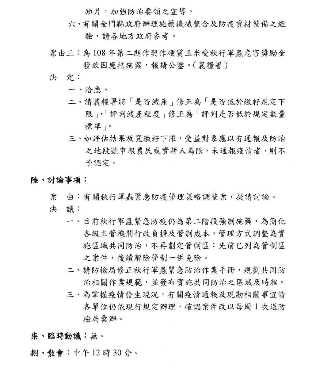 秋行軍蟲災害防救第12次會議紀錄