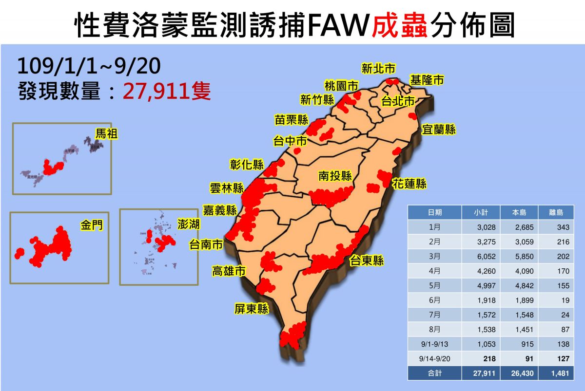 | 月份 | 全國統計 | 基隆市 | 臺北市 | 新北市 | 桃園市 | 新竹縣 | 新竹市 | 苗栗縣 | 臺中市 | 彰化縣 | 南投縣 | 雲林縣 | 嘉義縣 | 嘉義市 | 臺南市 | 高雄市 | 屏東縣 | 宜蘭縣 | 花蓮縣 | 臺東縣 | 連江縣 | 澎湖縣 | 金門縣 |