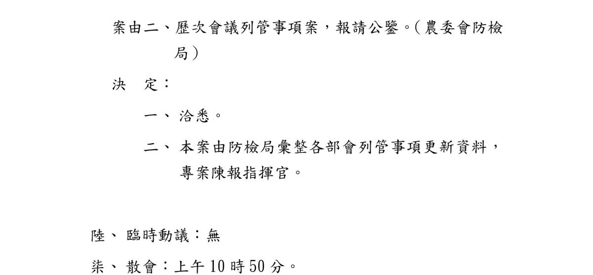非洲豬瘟中央災害應變中心第12次會議紀錄