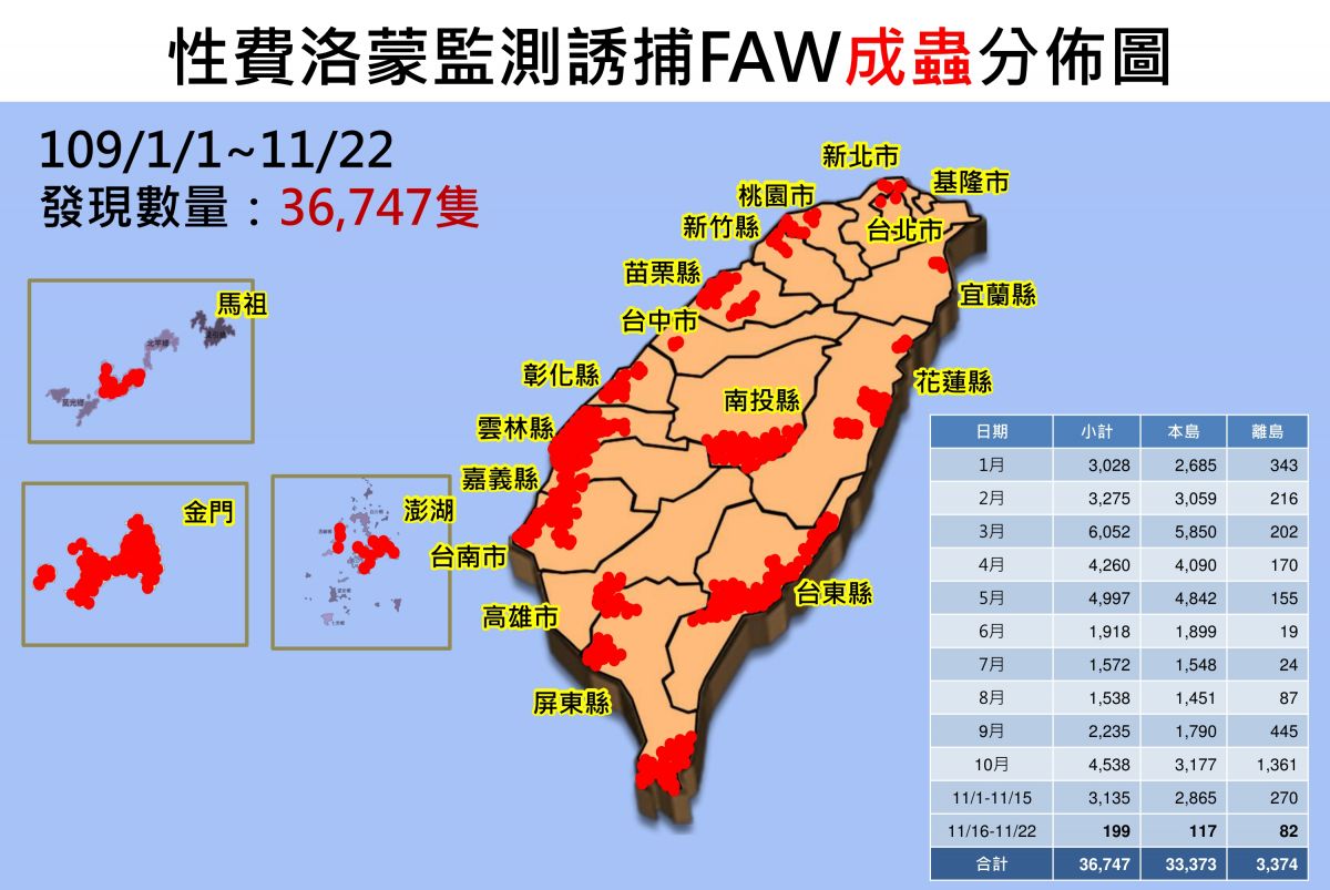 | 月份 | 全國統計 | 基隆市 | 臺北市 | 新北市 | 桃園市 | 新竹縣 | 新竹市 | 苗栗縣 | 臺中市 | 彰化縣 | 南投縣 | 雲林縣 | 嘉義縣 | 嘉義市 | 臺南市 | 高雄市 | 屏東縣 | 宜蘭縣 | 花蓮縣 | 臺東縣 | 連江縣 | 澎湖縣 | 金門縣 |