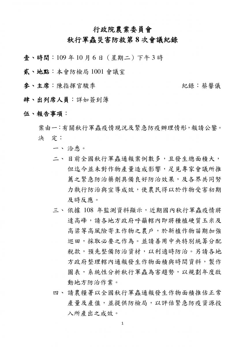 秋行軍蟲災害防救第8次會議紀錄(pdf)