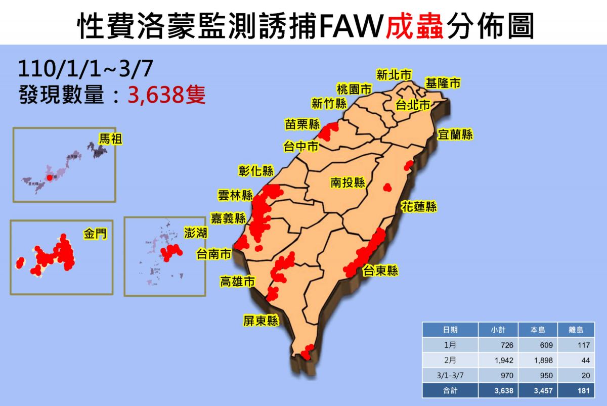 | 月份 | 全國統計 | 基隆市 | 臺北市 | 新北市 | 桃園市 | 新竹縣 | 新竹市 | 苗栗縣 | 臺中市 | 彰化縣 | 南投縣 | 雲林縣 | 嘉義縣 | 嘉義市 | 臺南市 | 高雄市 | 屏東縣 | 宜蘭縣 | 花蓮縣 | 臺東縣 | 連江縣 | 澎湖縣 | 金門縣 |