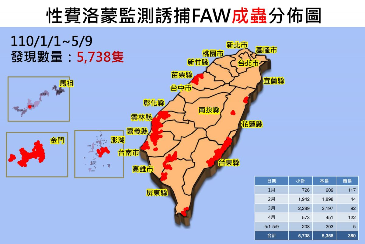 | 月份 | 全國統計 | 基隆市 | 臺北市 | 新北市 | 桃園市 | 新竹縣 | 新竹市 | 苗栗縣 | 臺中市 | 彰化縣 | 南投縣 | 雲林縣 | 嘉義縣 | 嘉義市 | 臺南市 | 高雄市 | 屏東縣 | 宜蘭縣 | 花蓮縣 | 臺東縣 | 連江縣 | 澎湖縣 | 金門縣 |