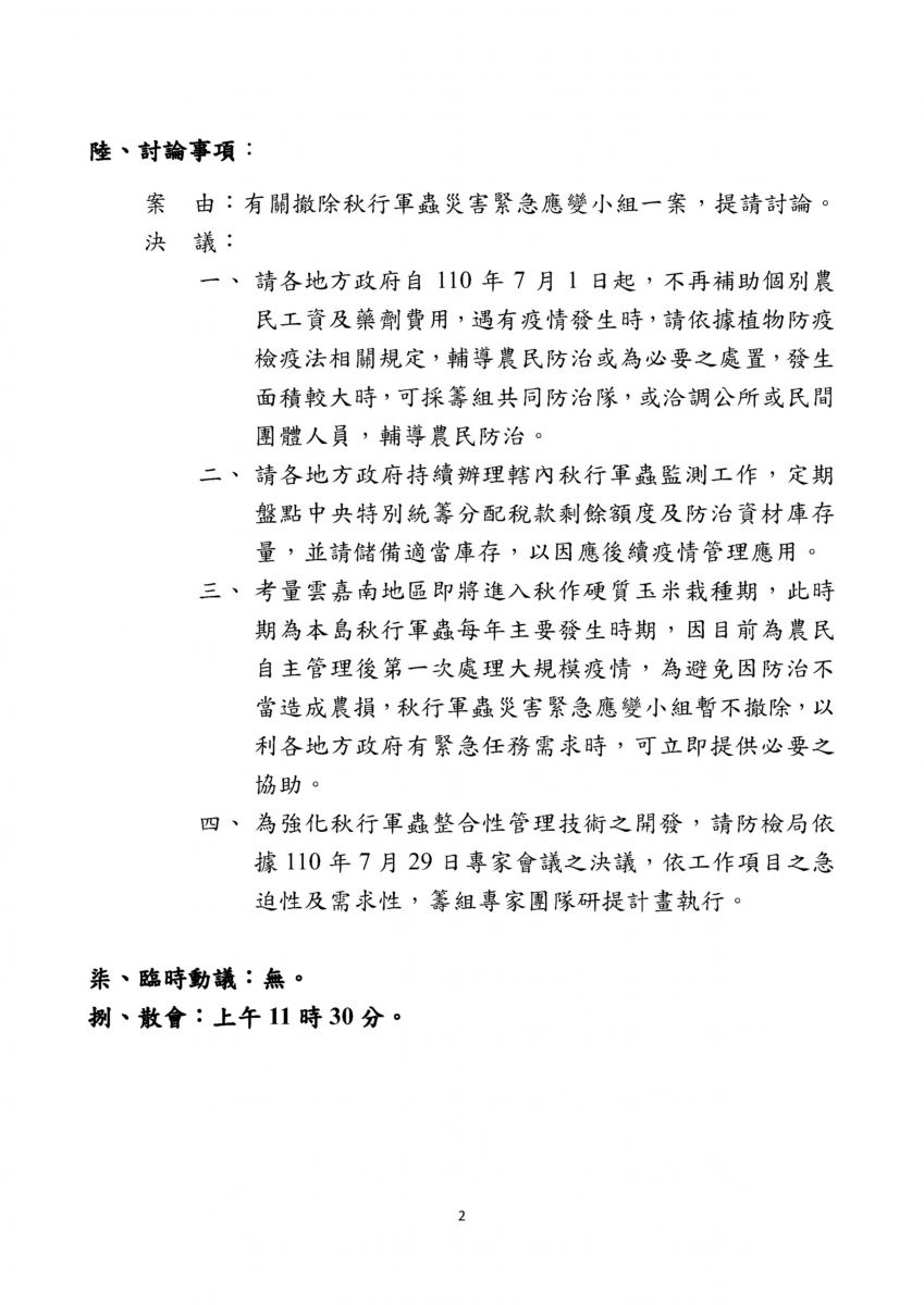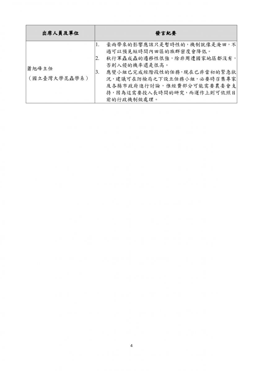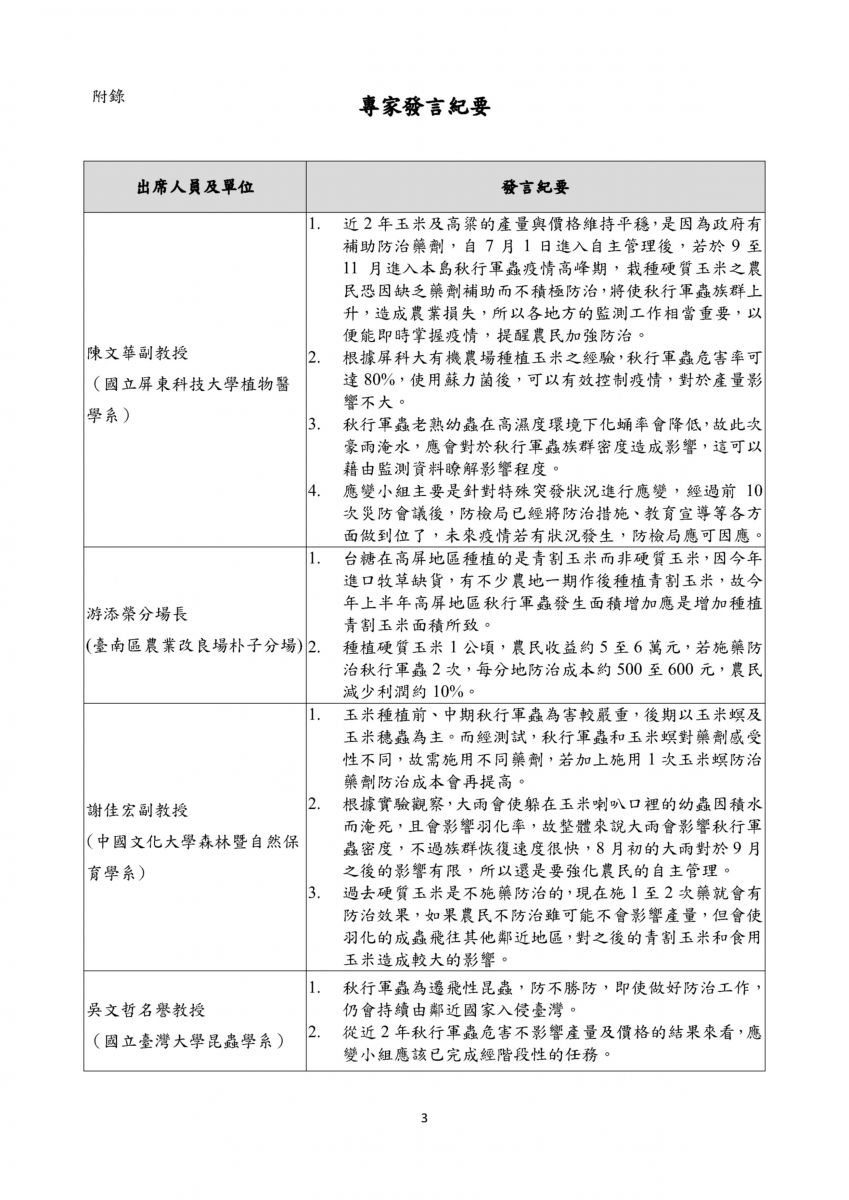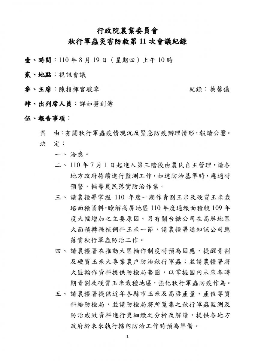 秋行軍蟲災害跨部會工作協調會議紀錄