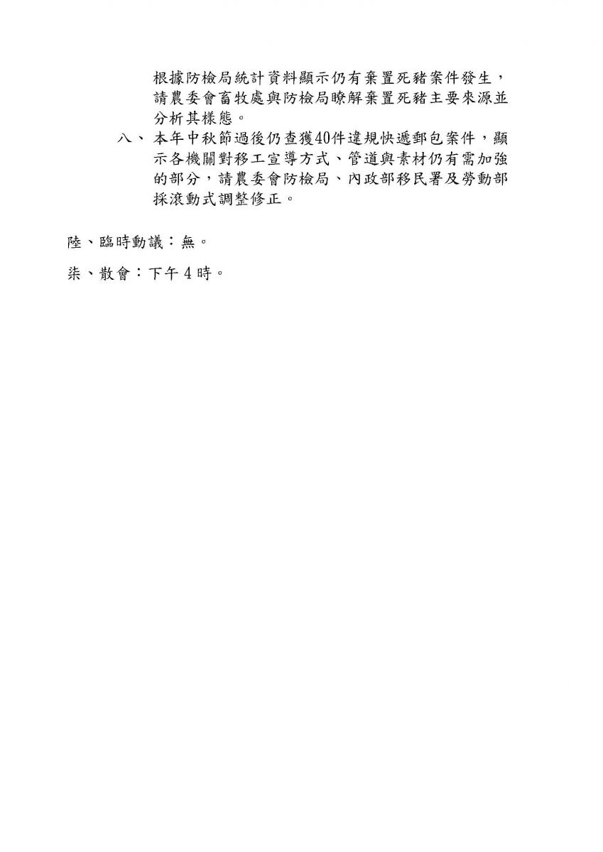 非洲豬瘟中央災害應變中心第9次會議紀錄