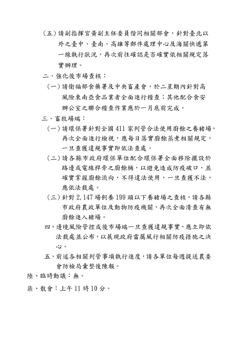 非洲豬瘟中央災害應變中心第11次會議紀錄