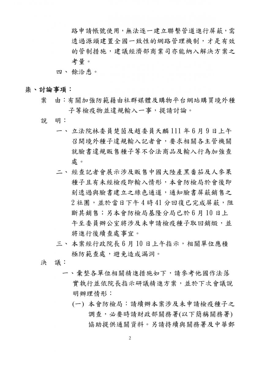 非洲豬瘟中央災害應變中心邊境管制暨宣導組111年第2次會議紀錄