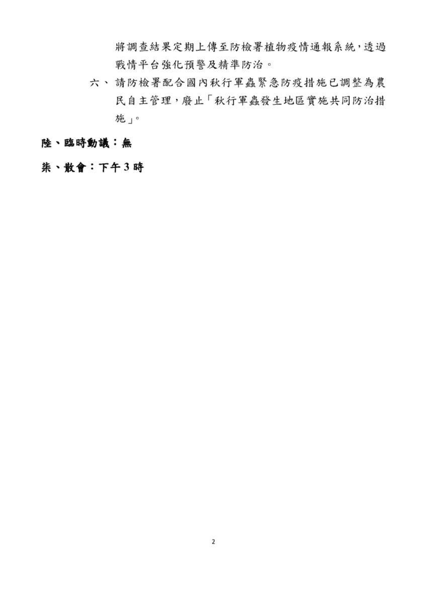 秋行軍蟲災害防救第2次會議紀錄