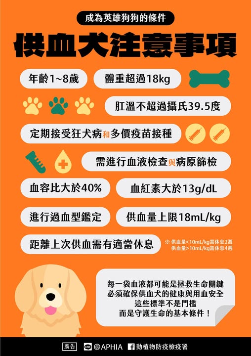 想讓您的狗狗成為「供血犬隻」嗎? 為確保供血犬隻健康,請先確認犬隻是否符合以下條件: